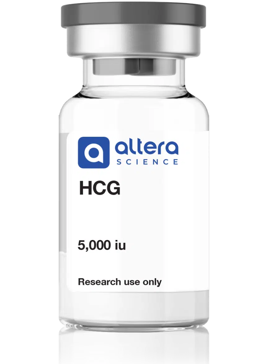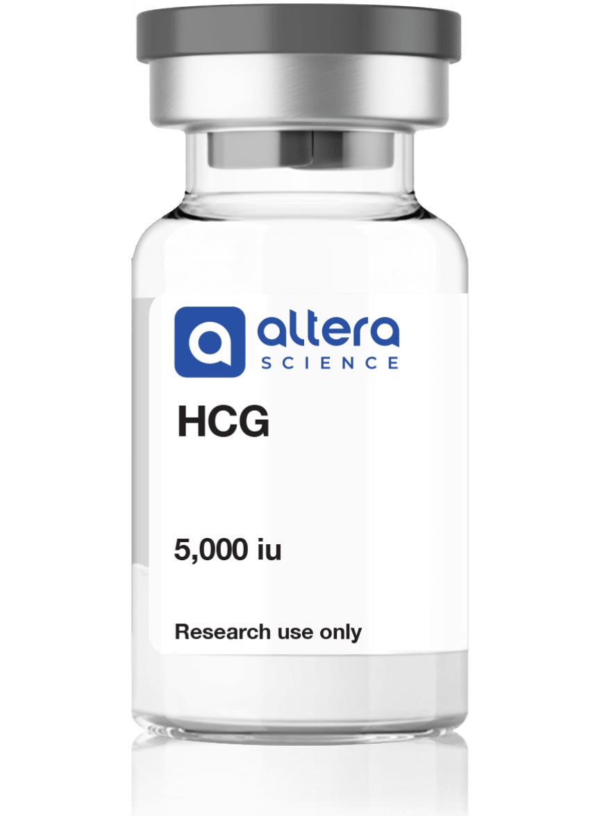 HCG (Human Chorionic Gonadotropin) is a glycoprotein peptide. It is used in laboratory models to study hormone-receptor interactions and is provided as a lyophilized powder.